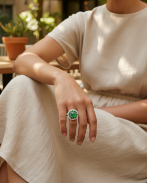 Rings with a double halo setting.